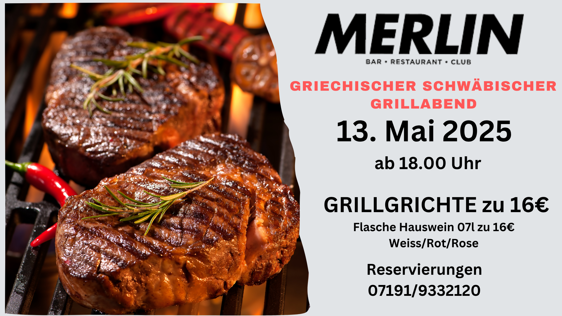 Reservierungen: 07191 / 9332120. Reservierungen werden bis 20 Uhr freigehalten