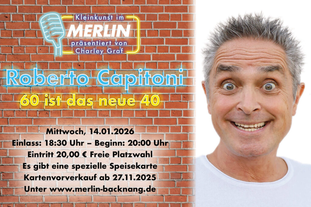 Es kommt ein Urgestein der Deutschen Comedy ins Merlin: Roberto Capitoni. Der vielfach ausgezeichnete Comedian zeigt sein aktuelles Programm „60 ist das neue 40!“